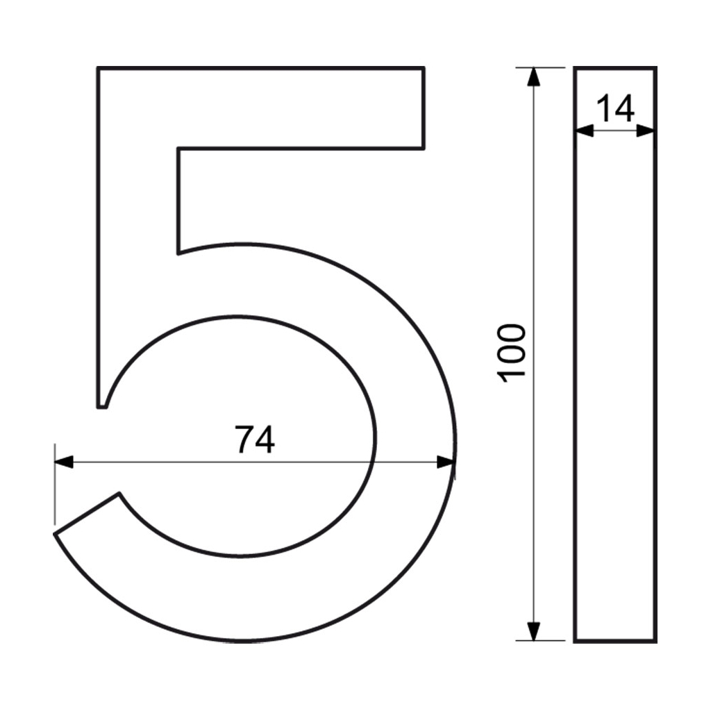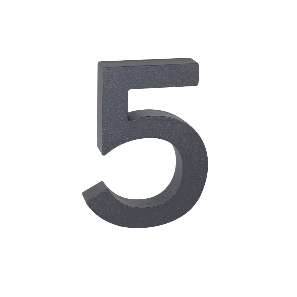 Domovní číslo "5" využijete při identifikaci objektů - jako součást popisného čísla na fasádě domu, firmy či jiných budov. Je vyrobené z hliníku a má strukturovaný povrch v barvě matného antracitu. Všechna čísla a znaky z této řady mají stejnou výšku i tloušťku. Poskládáte si tak popisné a orientační číslo v jednom stylu.