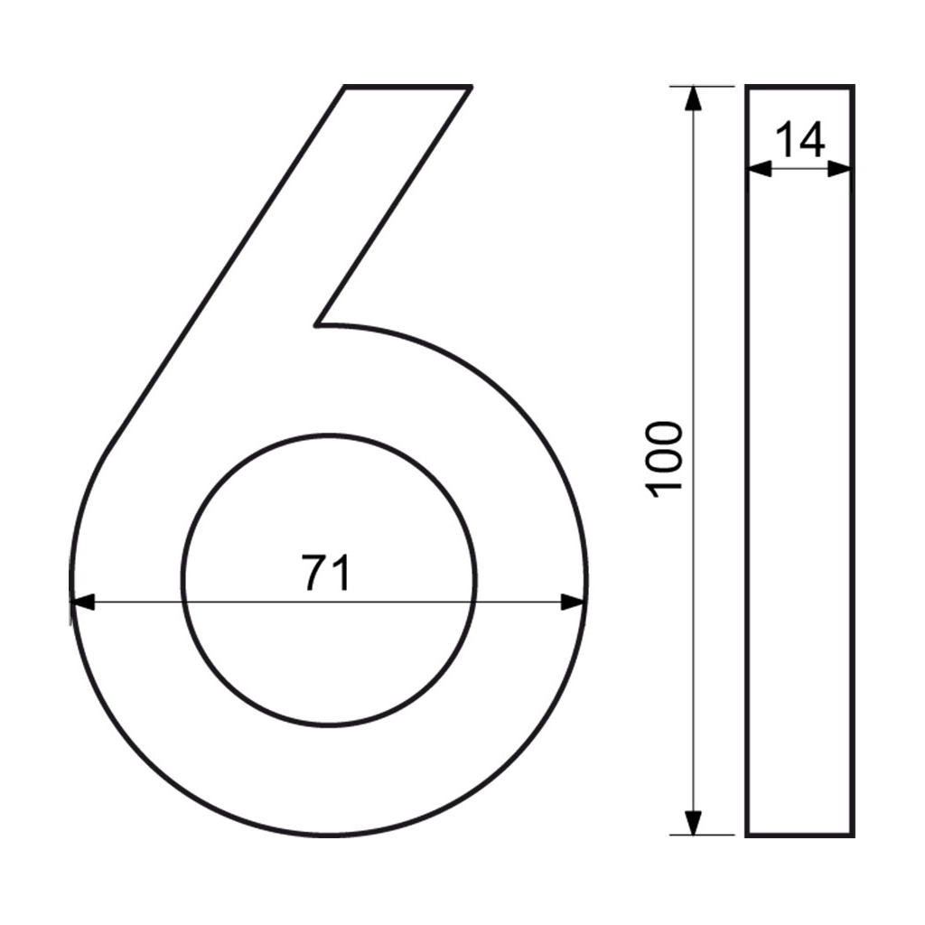 Domovní číslo "6" využijete při identifikaci objektů - jako součást popisného čísla na fasádě domu, firmy či jiných budov. Je vyrobené z hliníku a má broušený povrch. Všechna čísla a znaky z této řady mají stejnou výšku i tloušťku. Poskládáte si tak popisné a orientační číslo v jednom stylu.