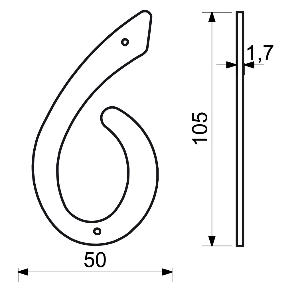 Ozdobné domovní číslo "6" ve 2D provedení využijete při identifikaci objektů - jako součást popisného čísla na fasádě domu, firmy či jiných budov. Je vyrobené z hliníku. Všechna čísla a znaky z této řady mají stejnou výšku i tloušťku. Poskládáte si tak popisné a orientační číslo v jednom stylu. Tento typ domovního čísla je vhodný pro instalaci na hladké dřevěné nebo plastové podklady.