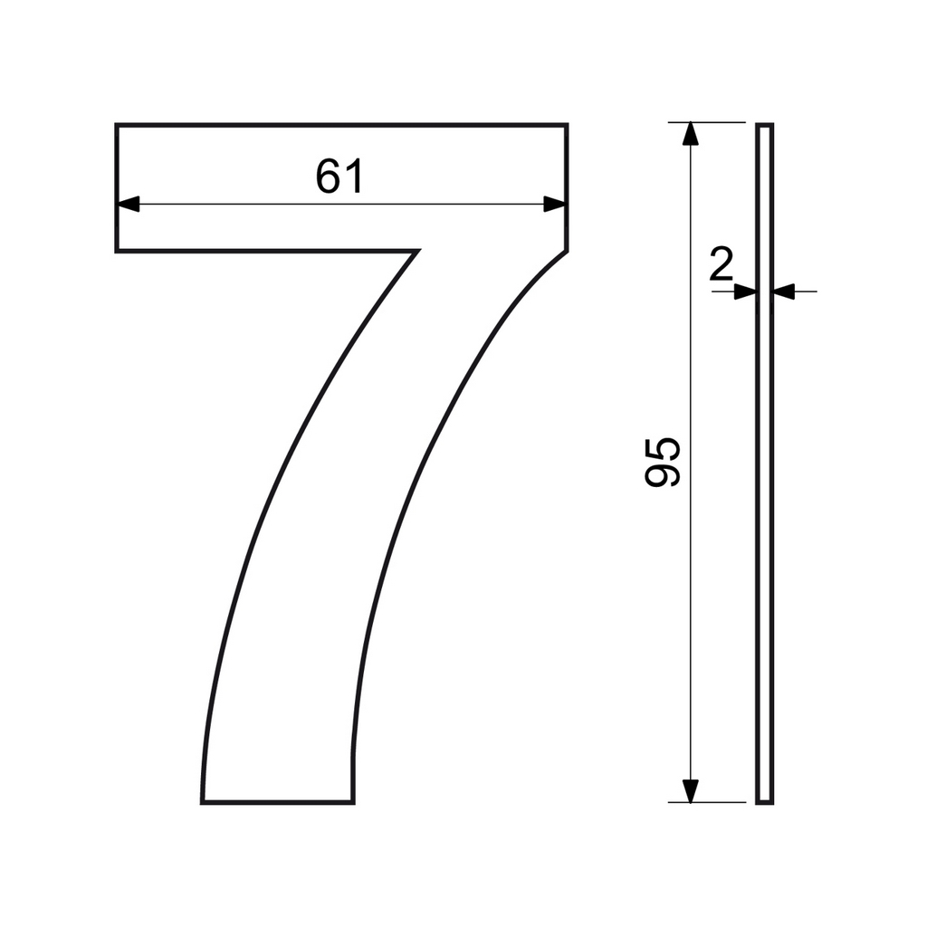 Domovní číslo "7" ve 2D provedení využijete při identifikaci objektů - jako součást popisného čísla na fasádě domu, firmy či jiných budov. Je vyrobené z nerezové oceli. Všechna čísla a znaky z této řady mají stejnou výšku i tloušťku. Poskládáte si tak popisné a orientační číslo v jednom stylu. Tento typ domovního čísla je vhodný pro instalaci na středně hrubé a hladké povrchy.