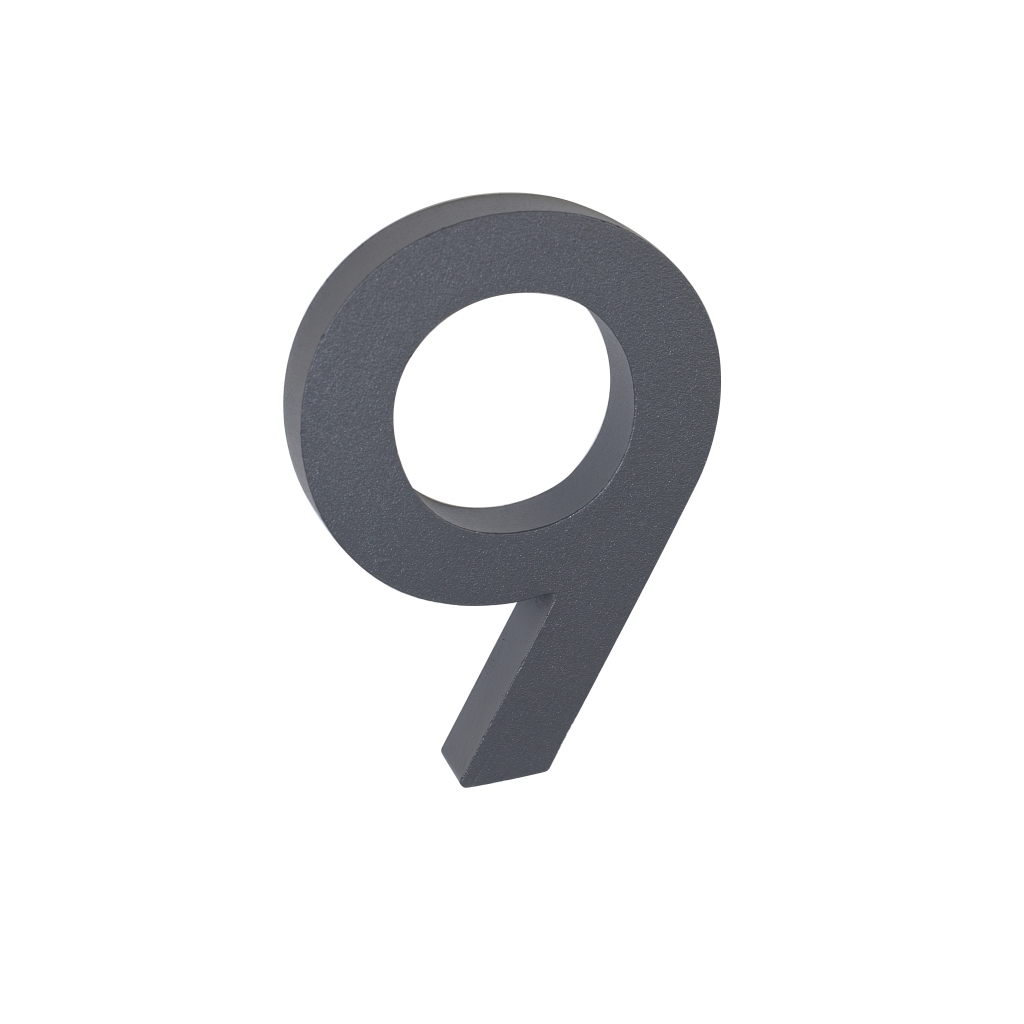 Domovní číslo "9" využijete při identifikaci objektů - jako součást popisného čísla na fasádě domu, firmy či jiných budov. Je vyrobené z hliníku a má strukturovaný povrch v barvě matného antracitu. Všechna čísla a znaky z této řady mají stejnou výšku i tloušťku. Poskládáte si tak popisné a orientační číslo v jednom stylu.