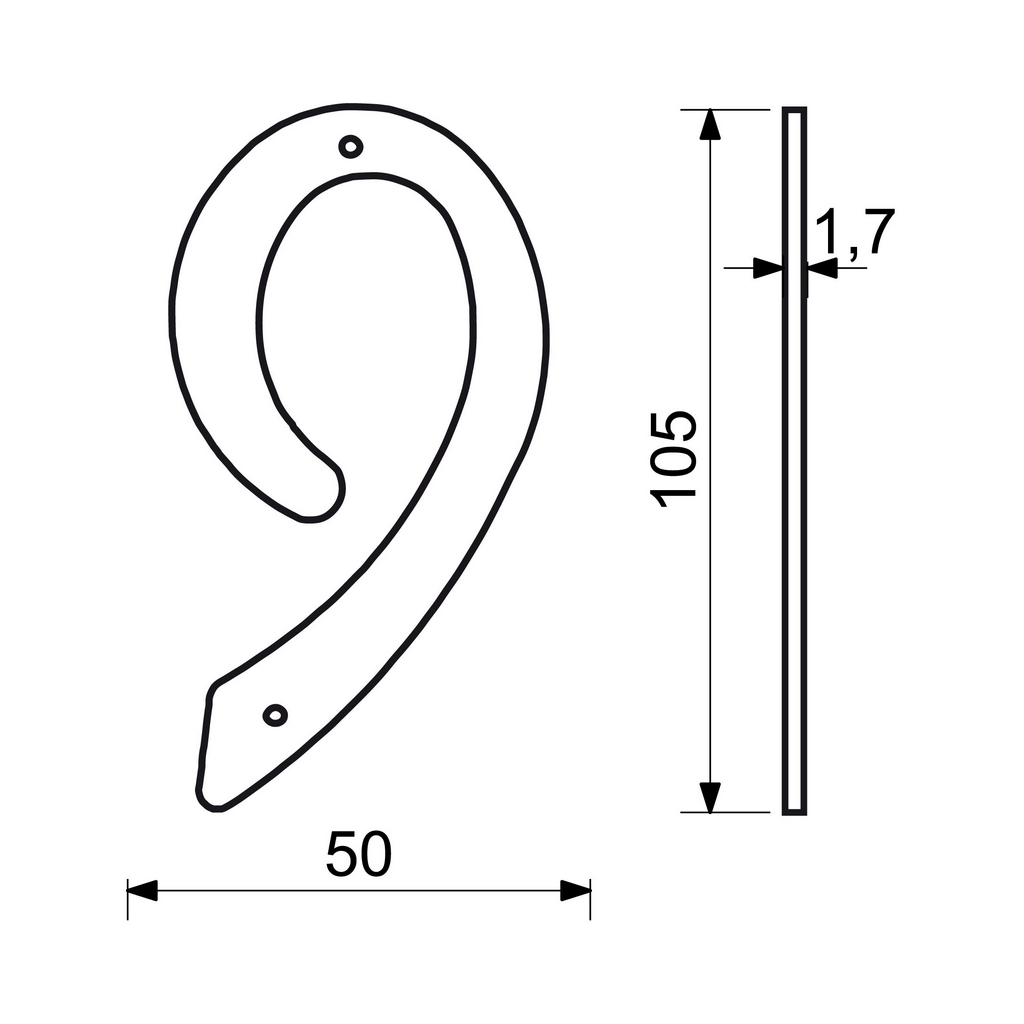 Ozdobné domovní číslo "9" ve 2D provedení využijete při identifikaci objektů - jako součást popisného čísla na fasádě domu, firmy či jiných budov. Je vyrobené z hliníku. Všechna čísla a znaky z této řady mají stejnou výšku i tloušťku. Poskládáte si tak popisné a orientační číslo v jednom stylu. Tento typ domovního čísla je vhodný pro instalaci na hladké dřevěné nebo plastové podklady.