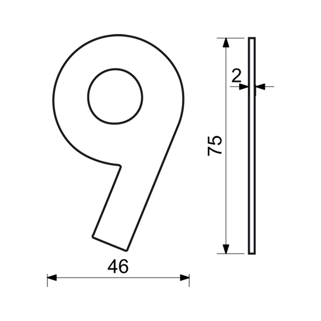 Domovní číslo "9" ve 2D provedení využijete při identifikaci objektů - jako součást popisného čísla na fasádě domu, firmy či jiných budov. Je vyrobené z nerezové oceli. Všechna čísla a znaky z této řady mají stejnou výšku i tloušťku. Poskládáte si tak popisné a orientační číslo v jednom stylu. Tento typ domovního čísla je vhodný pro instalaci na středně hrubé a hladké povrchy.