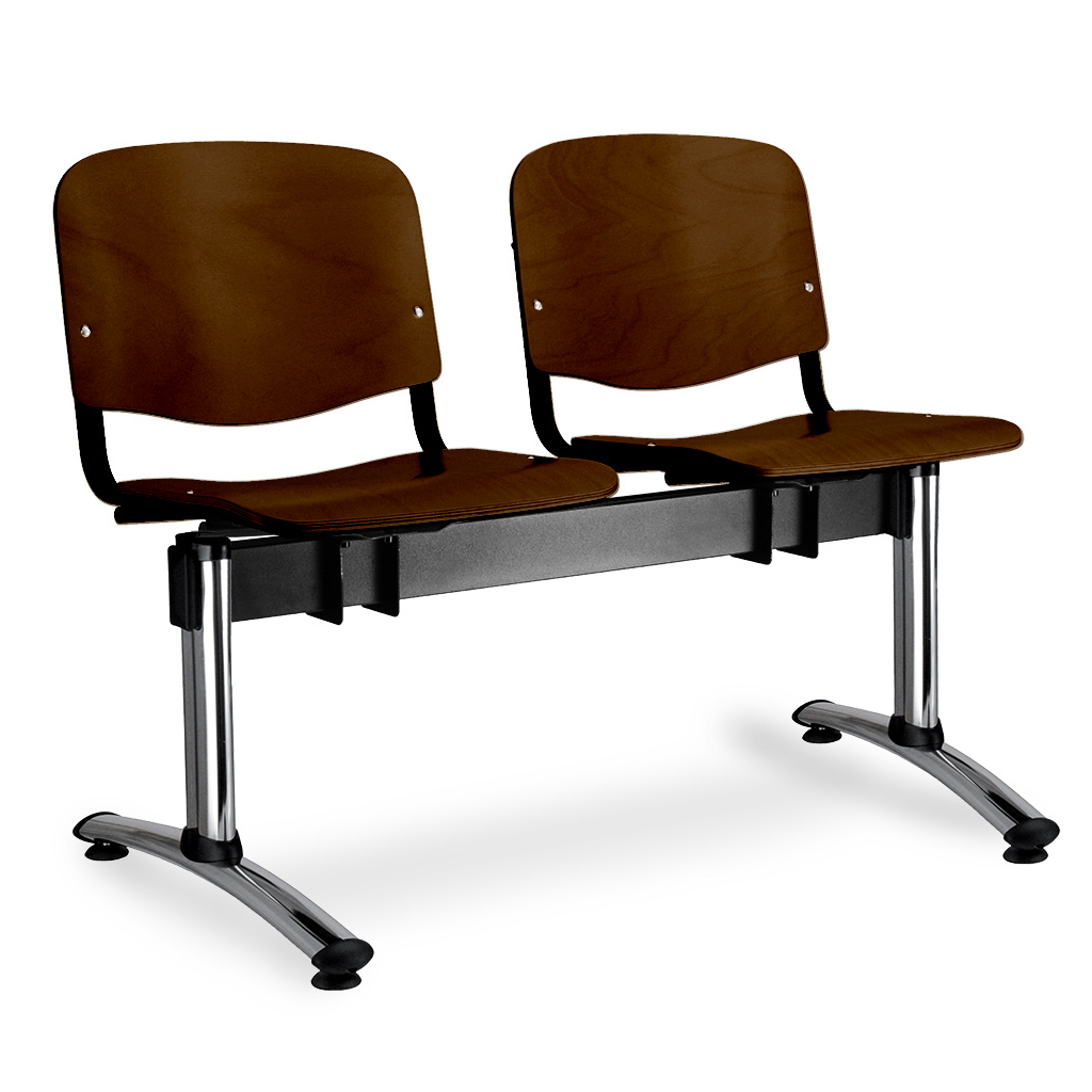 Dřevěná lavice ISO, 2-sedák - chromované nohy, ořech