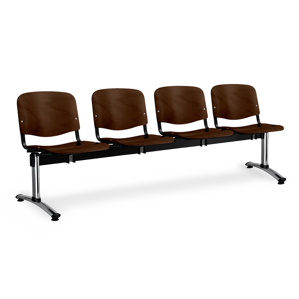 Dřevěná lavice ISO, 4-sedák - chromované nohy, ořech