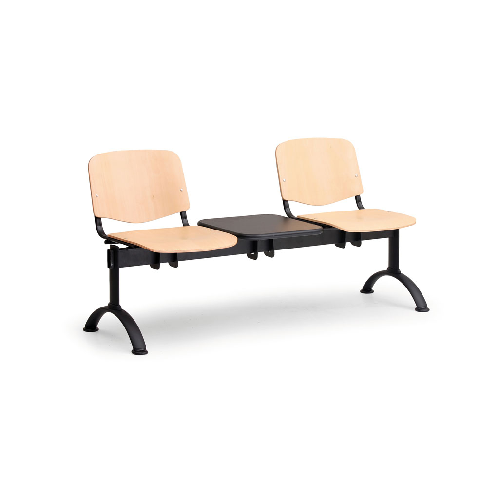 Dřevěná lavice ISO II, 2-sedák + stolek - černé nohy, buk