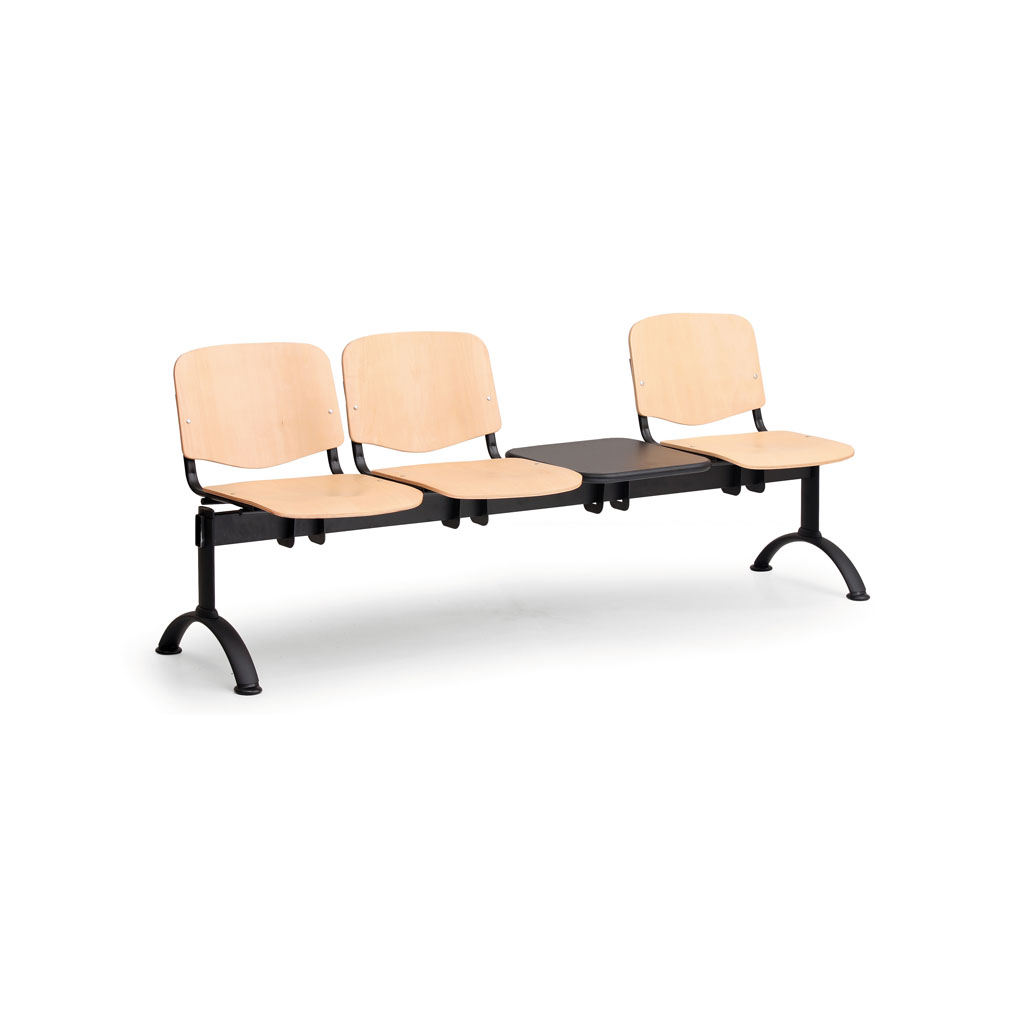 Dřevěná lavice ISO II, 3-sedák + stolek - černé nohy, buk