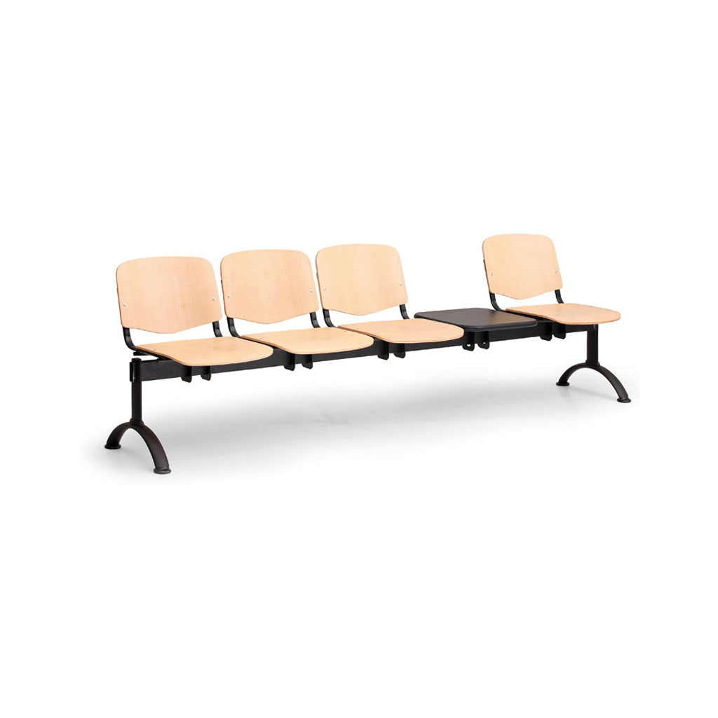 Dřevěná lavice ISO II, 4-sedák + stolek - černé nohy, buk