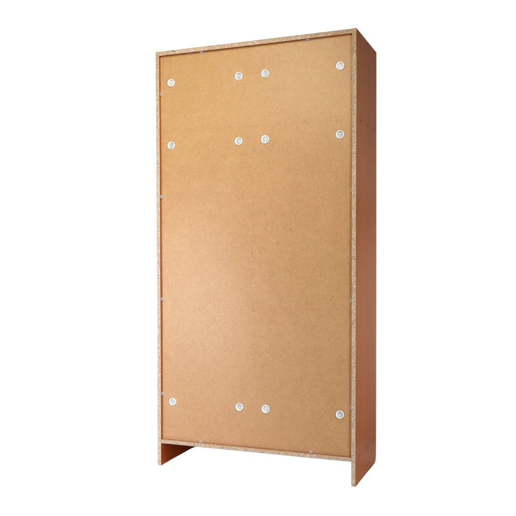 Dřevěná šatní skříň Visio disponuje celkem 4 policemi, které při rovnoměrném zatížení unesou až 25 kg. Vrchní deska skříně má sílu 28 mm a je stejně jako ostatní desky vyrobena z laminované dřevotřísky.