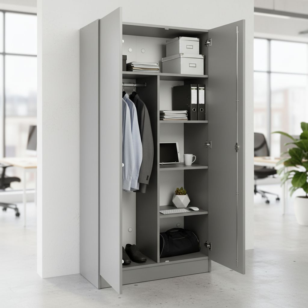 Vysokou širokou šatní skříň Visio LUX s rozměry 90 x 45 x 185 cm doporučujeme zejména pro pracovny zaměstnanců a nižšího managementu. Od standardní verze Visio se liší svým dvojbarevným provedením s šedými boky. Tato skříň je šedá celá.