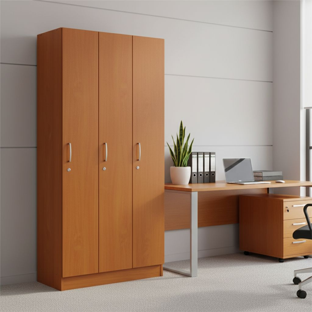Vysoké šatní trojskříňky Visio s rozměry 90 x 42 x 190 cm doporučujeme zejména pro pracovny zaměstnanců a nižšího managementu. Jedná se o prvek jedné z cenově nejvýhodnějších nábytkových řad a hodí se jak do uzavřených, tak i do open space pracoven.
