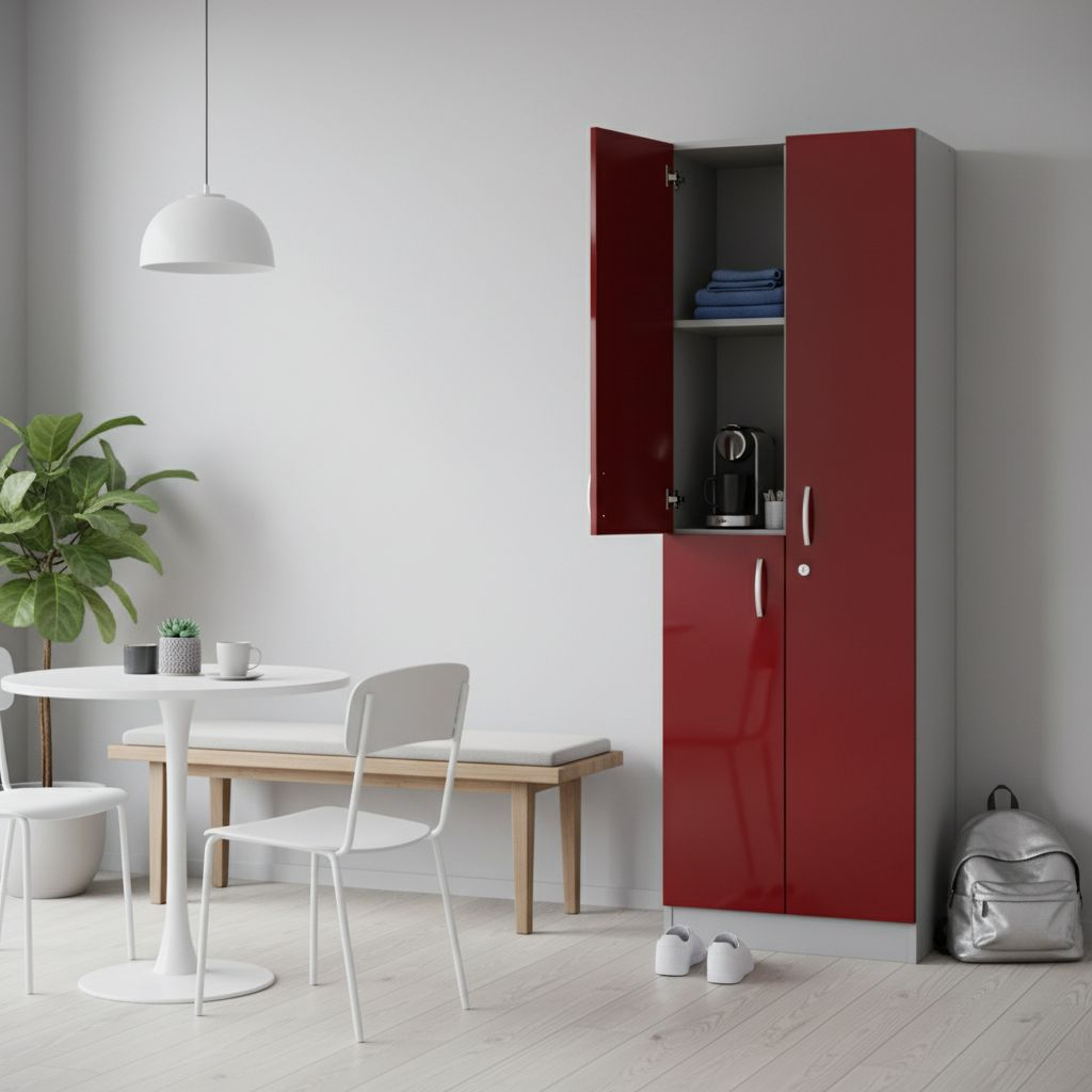 Dřevěná šatní skříňka Visio LUX - 2 oddíly, 60 x 42 x 190 cm, červená