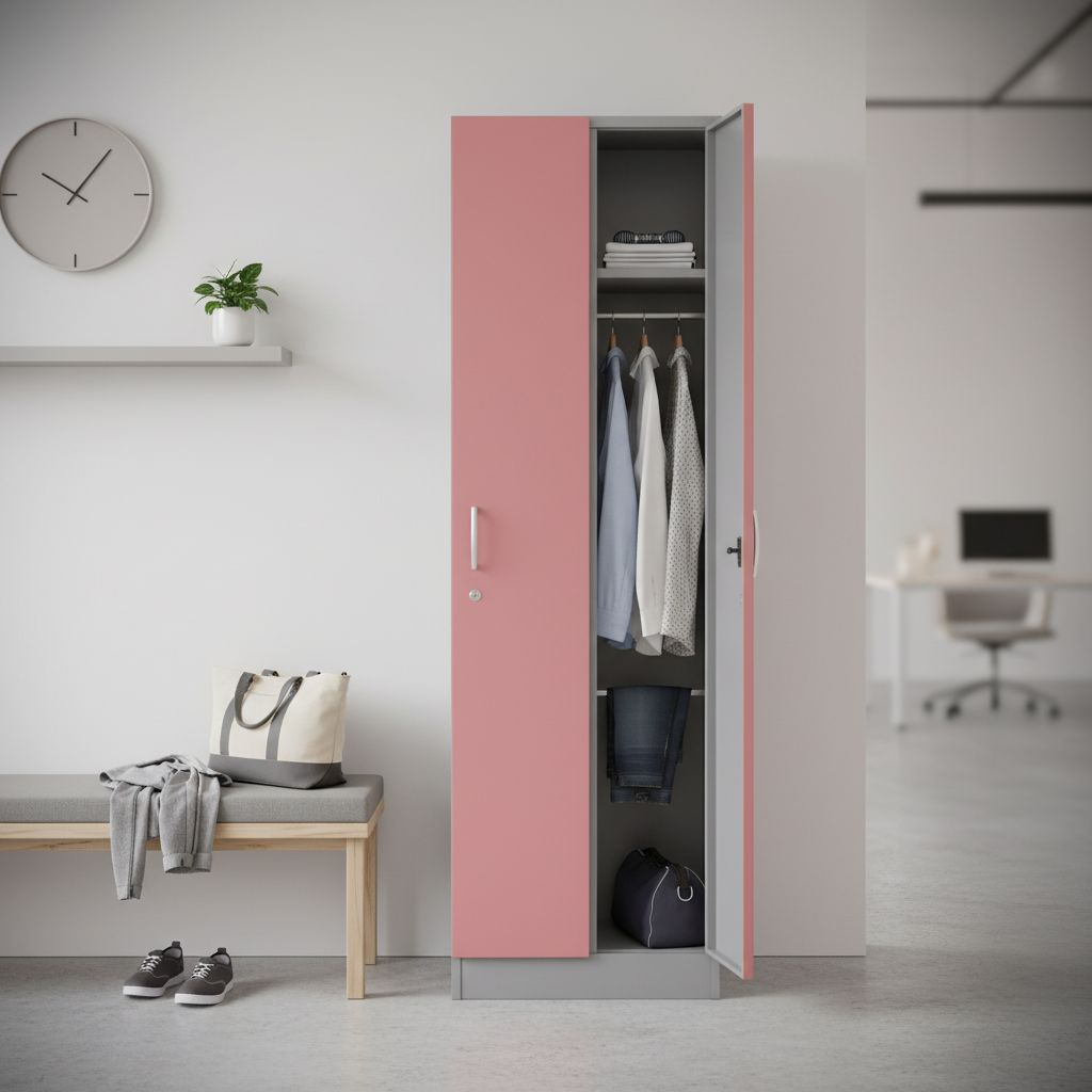 Dřevěná šatní skříňka Visio LUX - 2 oddíly, 60 x 42 x 190 cm, růžová