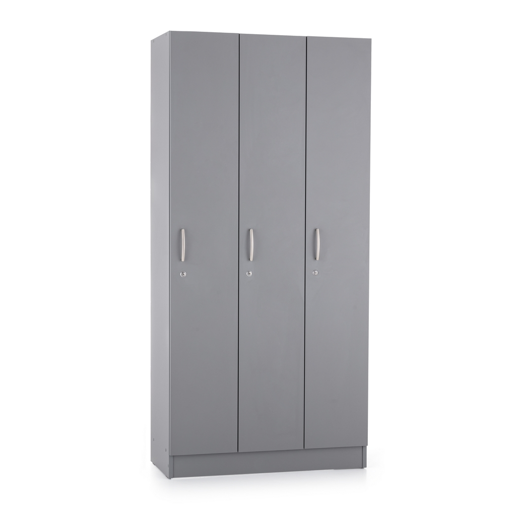 Dřevěná šatní skříňka Visio LUX - 3 oddíly, 90 x 42 x 190 cm, šedá