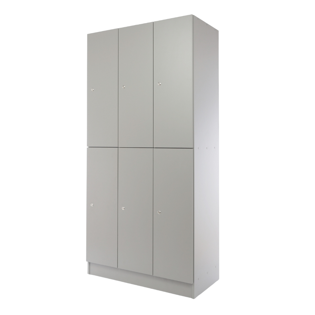 Dřevěná šatní skříňka Visio LUX - 6 boxů, 90 x 45 x 185 cm, cylindrický zámek, šedá