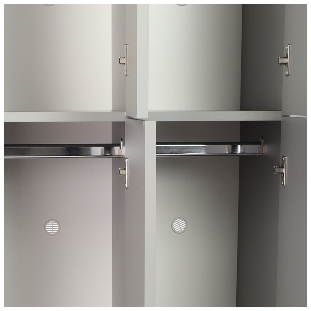 Šatní skříňka Visio LUX je vyrobená z laminované dřevotřísky o síle 18 mm. Každá dvířka mají svůj vlastní cylindrický zámek, který otevře pouze příslušný klíč, který ke skříňce dostanete. Vaše věci budou v bezpečí.
