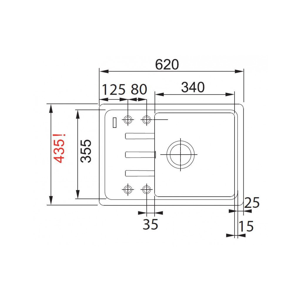 Okraj pro uchycení dřezu je 1 cm široký z každé strany.