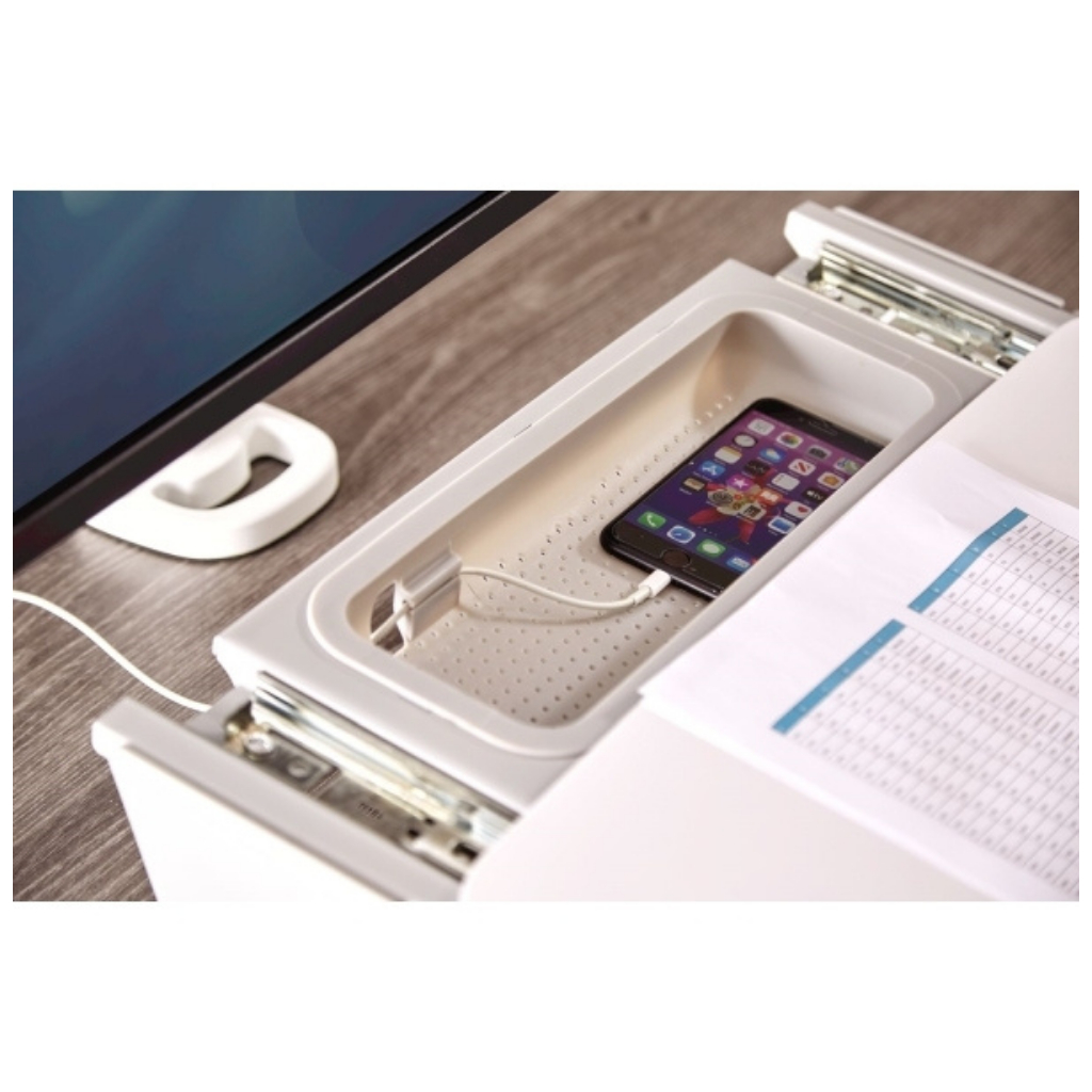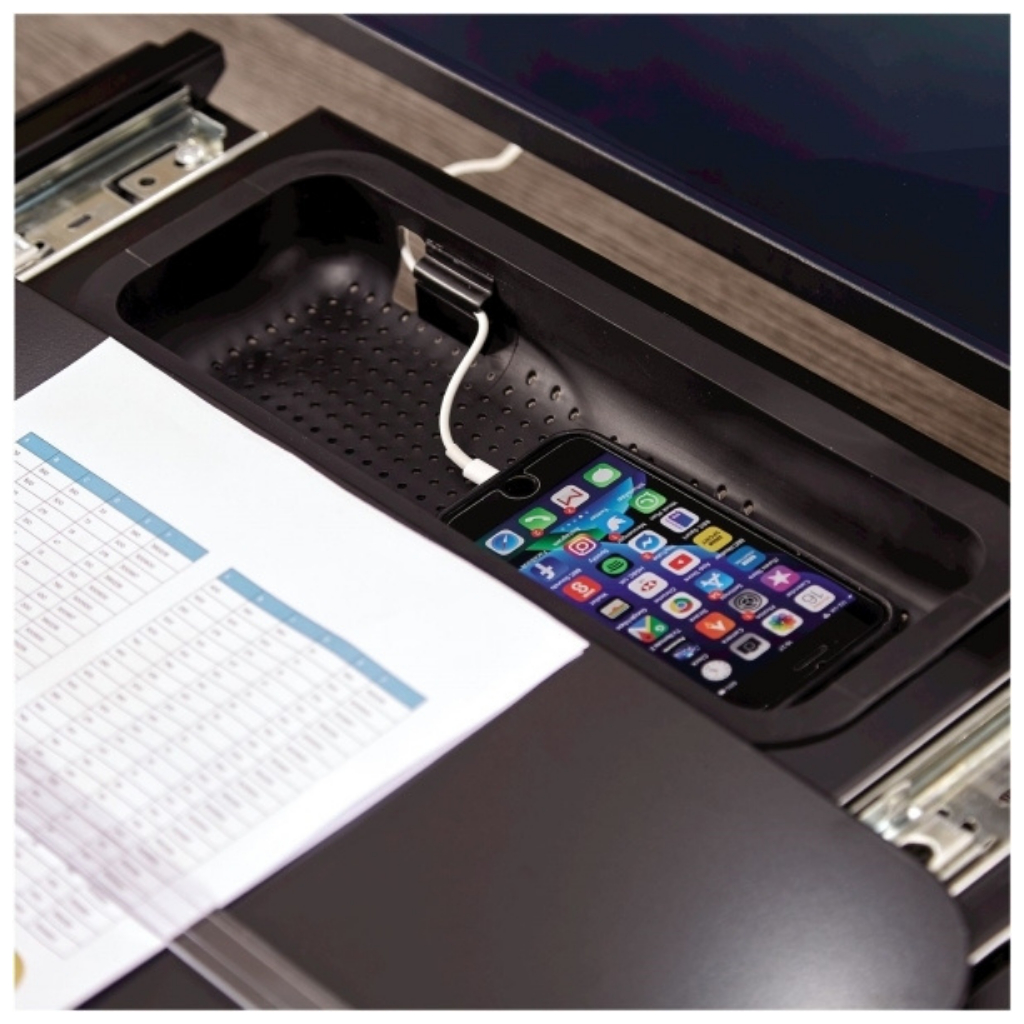 - Zabudovaný úložný prostor pro kancelářské potřeby či mobilní telefon
