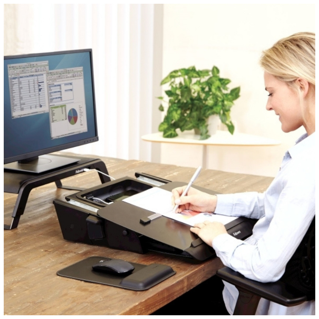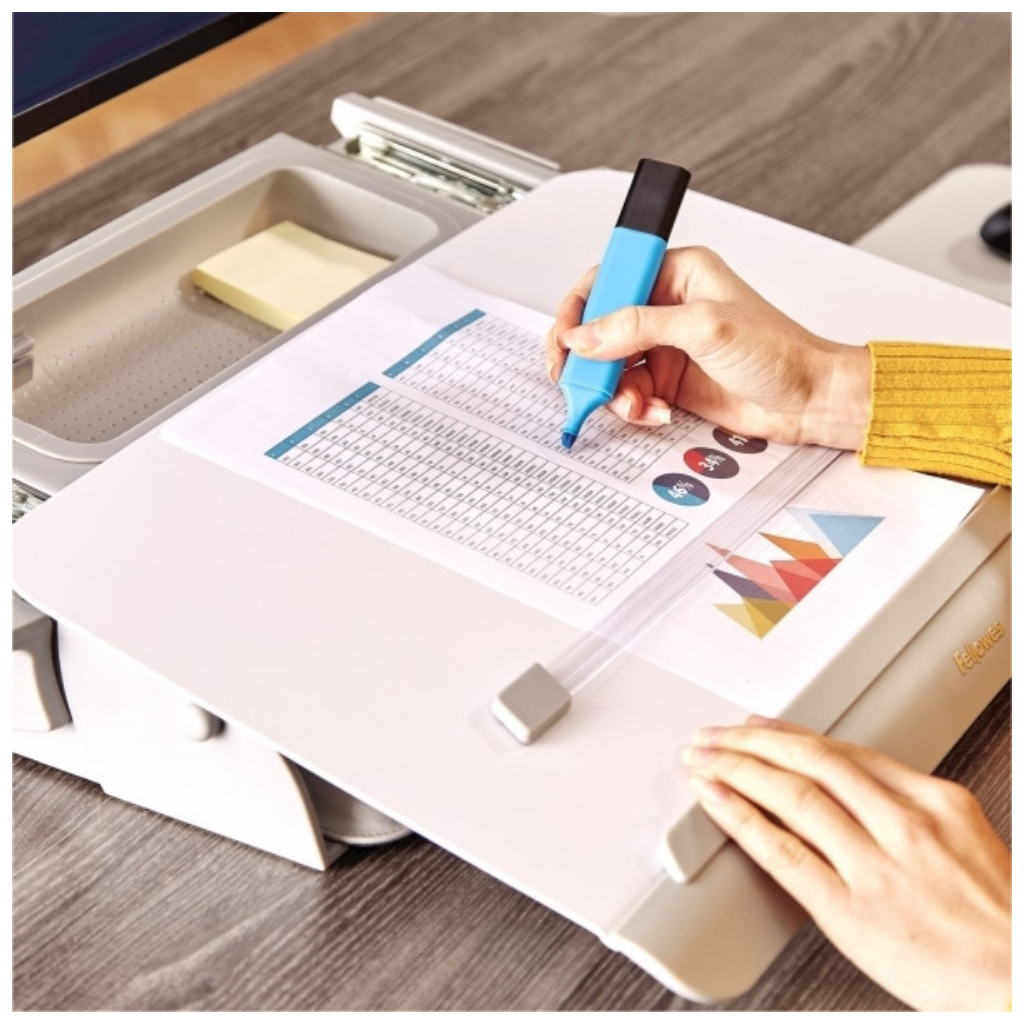 Nastavitelný držák HANA vám ulehčí práci v kanceláři i z domova. Jedná se o držák na dokumenty o formátu až A3 se zabudovaným vnitřním prostorem na telefon nebo kancelářské potřeby.