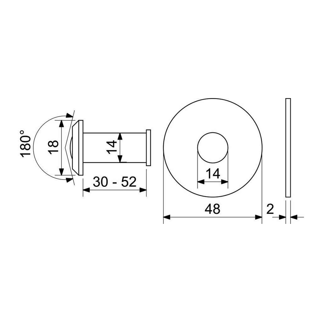 - Rozměry celého kukátka 18 × 30-52 mm (průměr × hloubka)