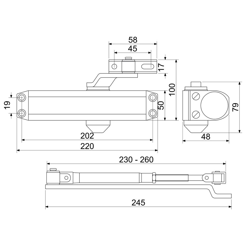 - Zavírací síla podle způsobu montáže 2-4 (norma EN 1154)