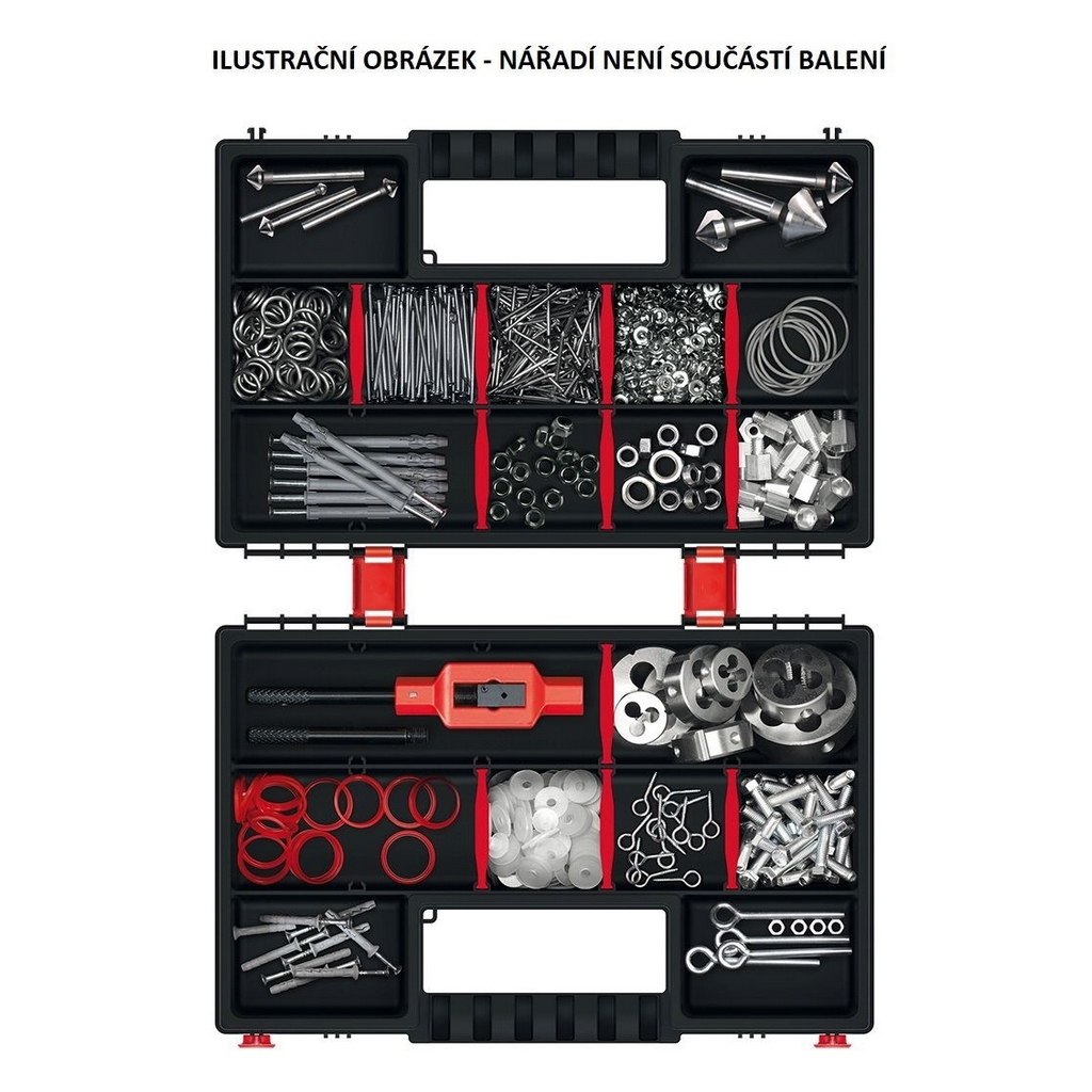 Organizéry představují praktický způsob, jak si udržet pořádek v drobnějším náčiní a součástkách a zároveň je mít vždy po ruce. Tento model je vybaven odnímatelnými přepážkami, pomocí kterých si úložný prostor přizpůsobíte přesně na míru.