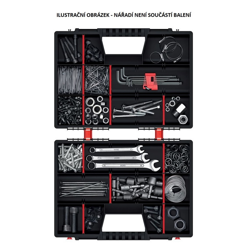 Organizéry představují praktický způsob, jak si udržet pořádek v drobnějším náčiní a součástkách a zároveň je mít vždy po ruce. Tento model je vybaven odnímatelnými přepážkami, pomocí kterých si úložný prostor přizpůsobíte přesně na míru.