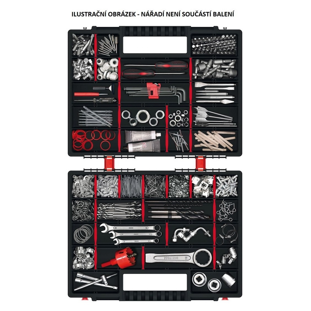 Organizéry představují praktický způsob, jak si udržet pořádek v drobnějším náčiní a součástkách a zároveň je mít vždy po ruce. Tento model je vybaven odnímatelnými přepážkami, pomocí kterých si úložný prostor přizpůsobíte přesně na míru.