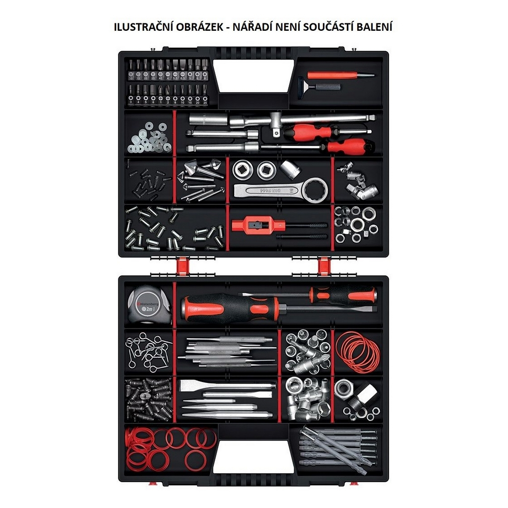 Organizéry představují praktický způsob, jak si udržet pořádek v drobnějším náčiní a součástkách a zároveň je mít vždy po ruce. Tento model je vybaven odnímatelnými přepážkami, pomocí kterých si úložný prostor přizpůsobíte přesně na míru.