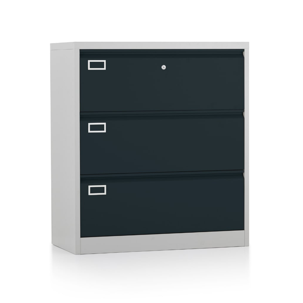 Dvouřadá kovová kartotéka A4 - 3 zásuvky, 90 x 45 x 102 cm, cylindrický zámek, antracitová - ral 7016
