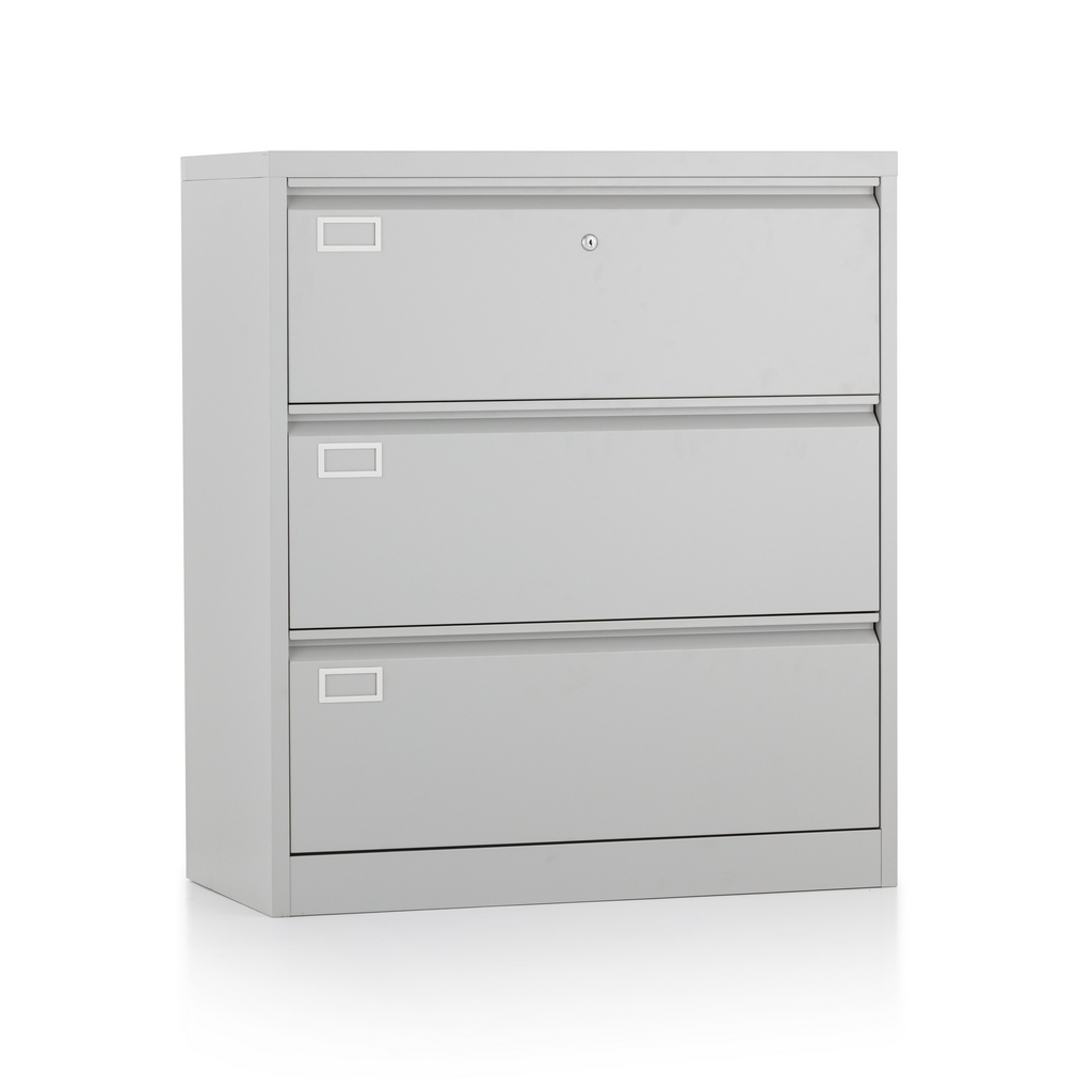 Dvouřadá kovová kartotéka A4 - 3 zásuvky, 90 x 45 x 102 cm, cylindrický zámek, šedá - ral 7035