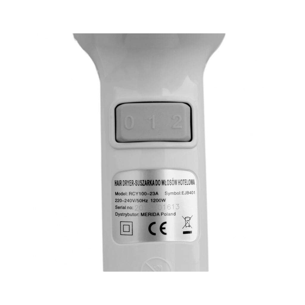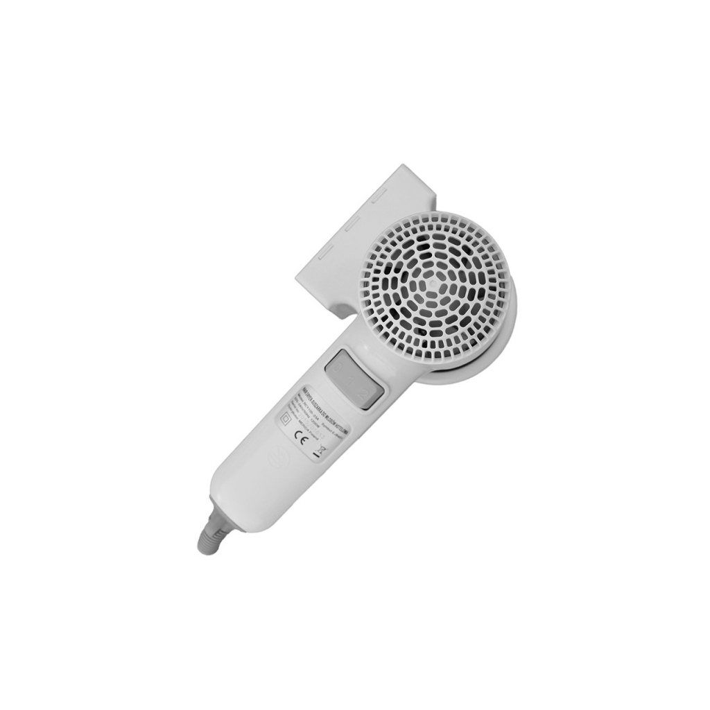 Spínač, který je součástí držáku, fén automaticky vypne po zavěšení. Nabízí možnost nastavení intenzity proudění vzduchu na 2 úrovně. Kompaktní set fénu a držáku je vyrobený z pevného plastu. Ten odolává vlhkosti a výborně se udržuje.