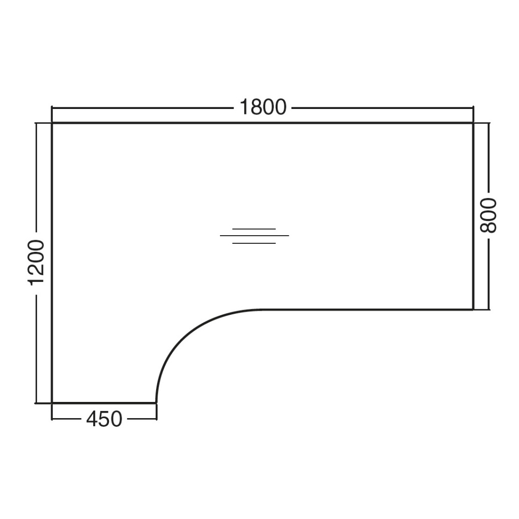 Vrchní deska z laminované dřevotřísky o síle 25 mm má na délku 180 cm. Hloubka stolu je v nejširším místě 120 a v nejužším 80 cm. Budete mít tedy dostatek prostoru pro klávesnici a myš.