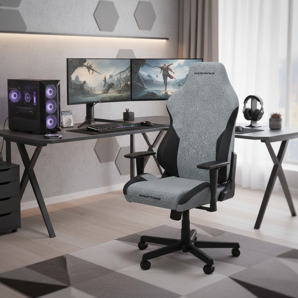 Herní židle DXRacer DRIFTING, látková, šedá / černá