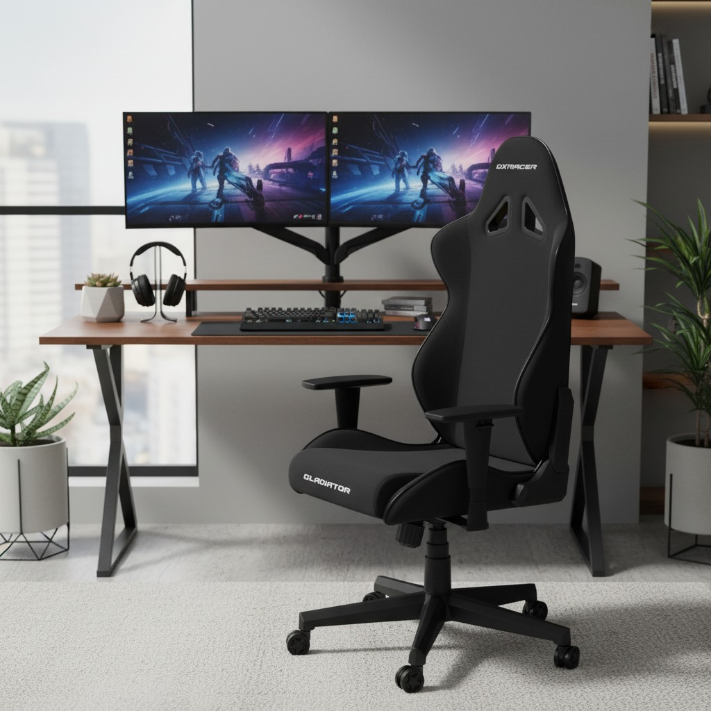 Svým designem je DXRacer Gladiator přesně to, co od herní židle očekáváte – tvarem připomíná závodní sedačku a robustní konstrukce už na pohled slibuje pohodlné sezení.