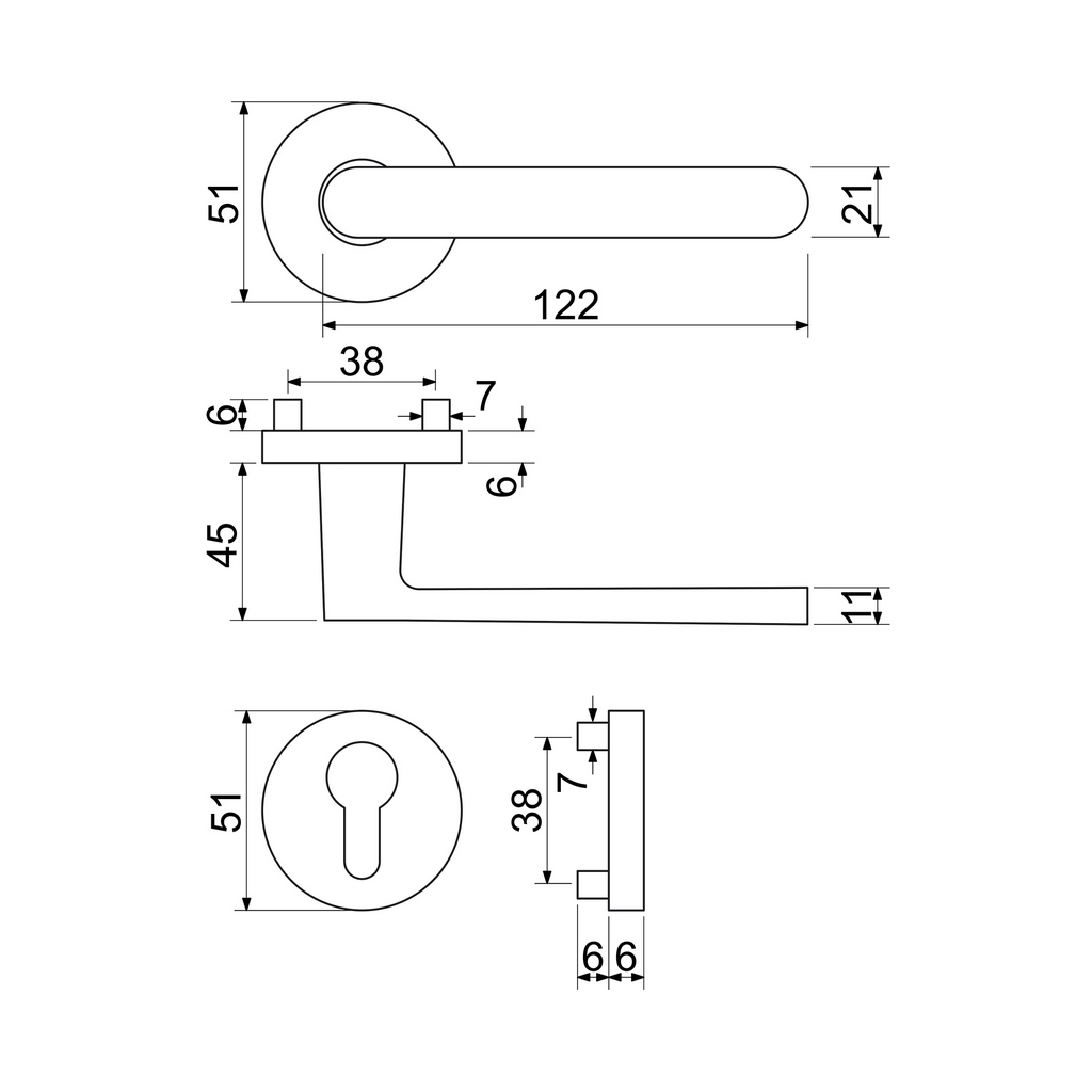 Dveřní kování na kulatých rozetách představuje moderní klasiku, která neurazí v žádném interiéru. Tento model nabízí konfiguraci klika + klika a rozetu s výřezem na cylindrickou vložku.