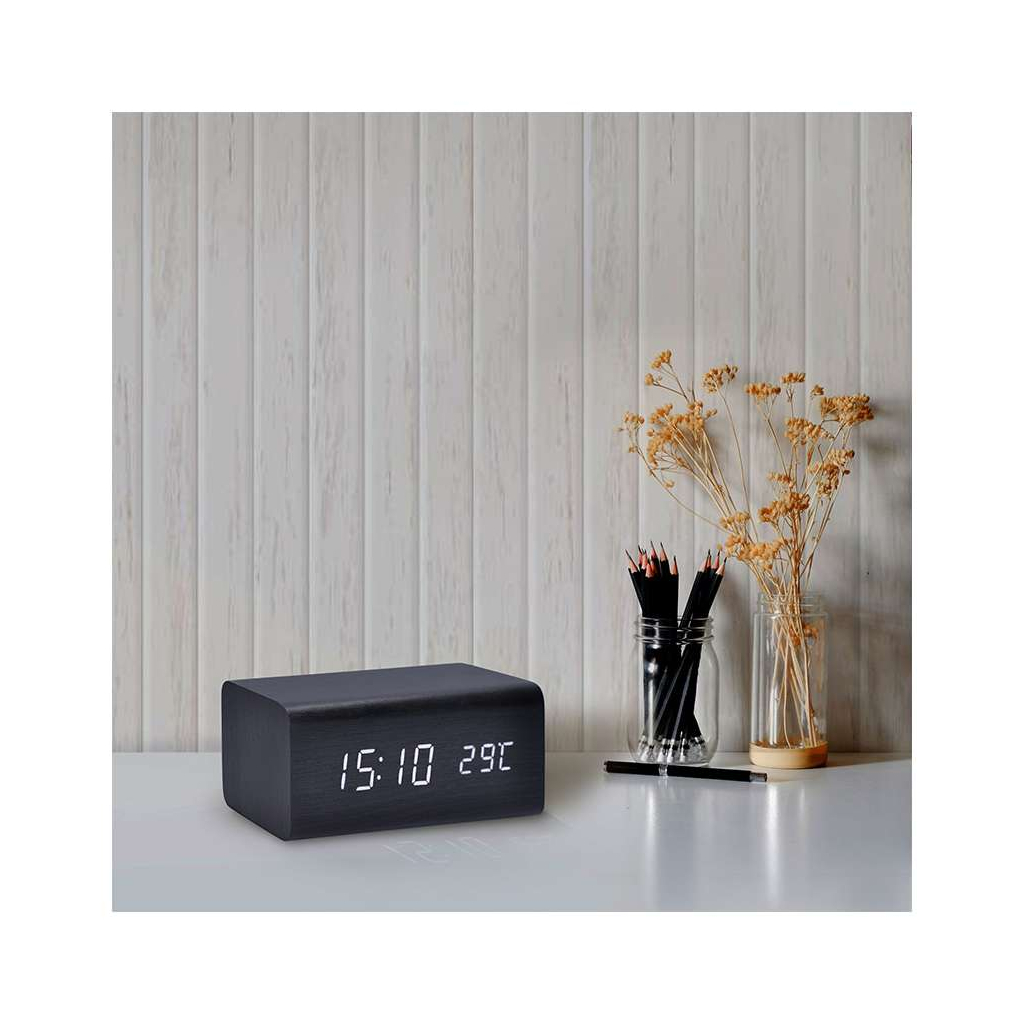 Hodiny s budíkem CA01 jsou ideálním společníkem pro každý interiér, který vyžaduje přesnost a přehlednost. Snadno čitelný LED displej zobrazuje čas, datum a teplotu, což vám umožní mít všechny důležité informace na dosah ruky. Napájení je zajištěno díky praktickému USB kabelu, který je součástí balení, což zajišťuje jednoduché a spolehlivé ovládání bez zbytečného starání se o baterie.