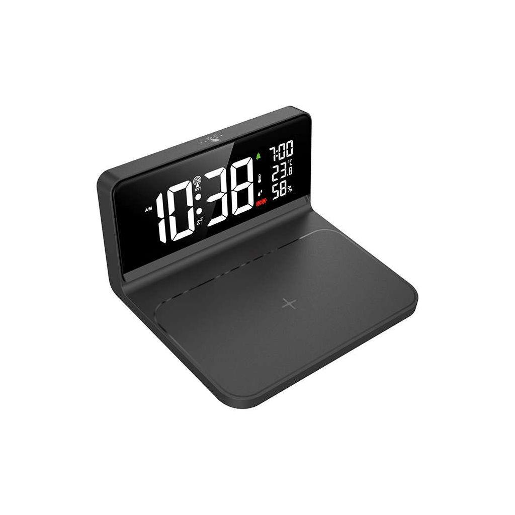 Hodiny s qi bezdrátovým nabíjením CA06, černá