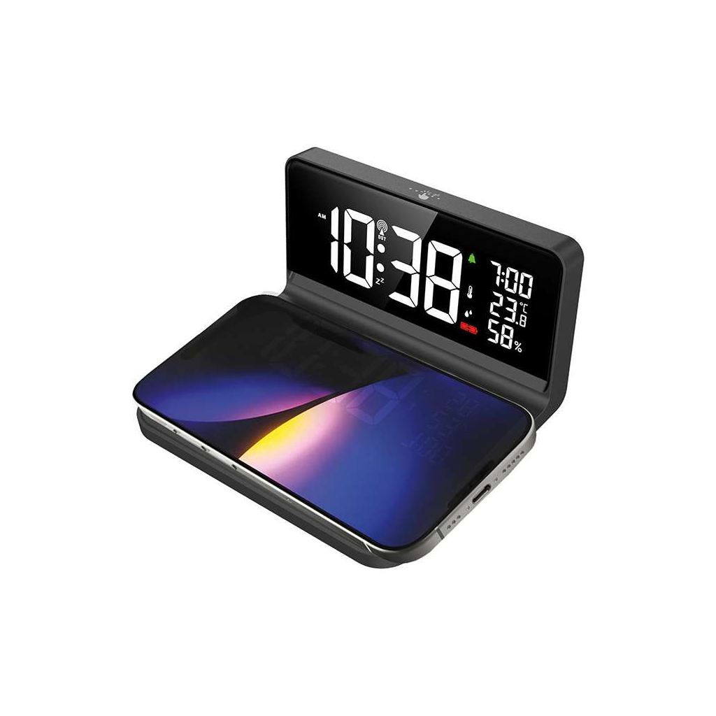 Vyberte si Hodiny s qi bezdrátovým nabíjením CA06 a užívejte si moderní technologii a praktické funkce v elegantním a kompaktním designu, který dokonale zapadne do každého interiéru.