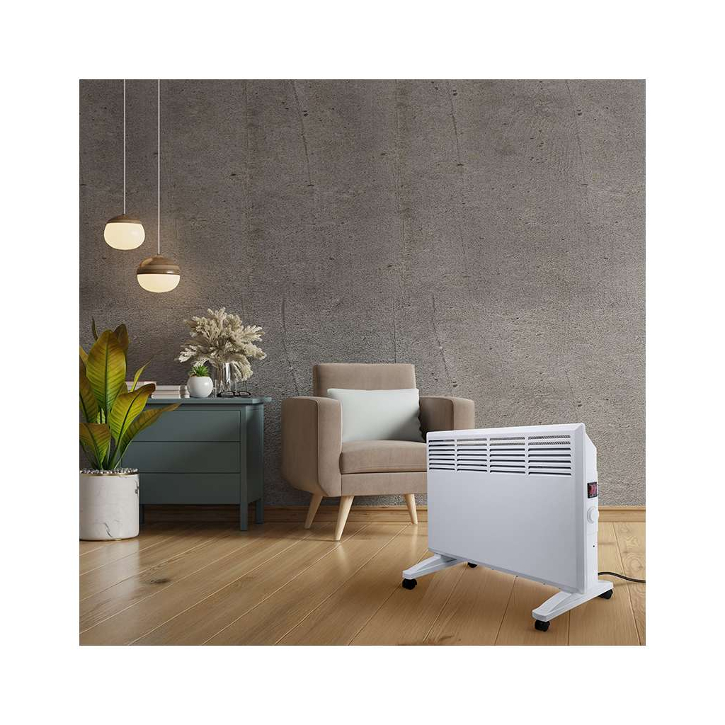 Díky stupni krytí IPX4 je konvektor chráněn před stříkající vodou, což umožňuje jeho bezpečné používání i ve vlhkých prostorách, jako jsou koupelny nebo kuchyně. Může být snadno umístěn na kolečka pro volné stání nebo namontován na zeď podle vašich potřeb.