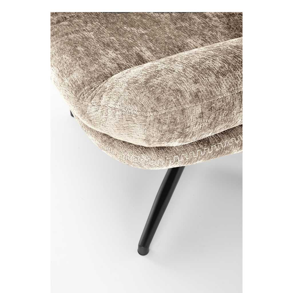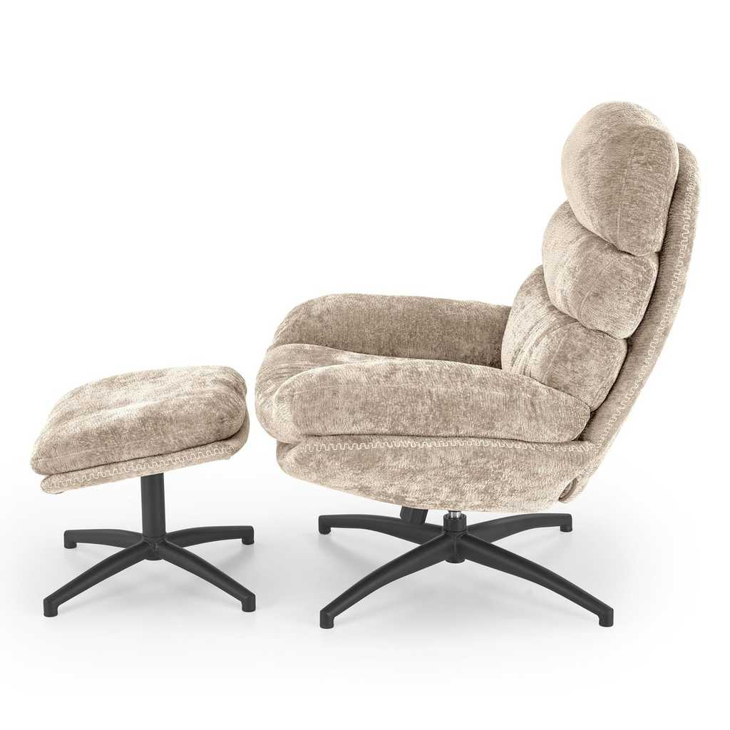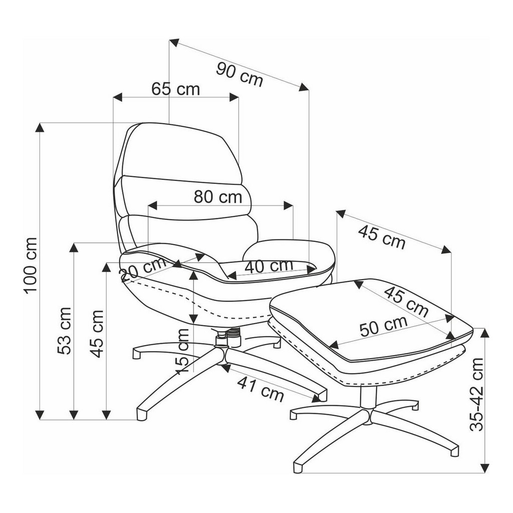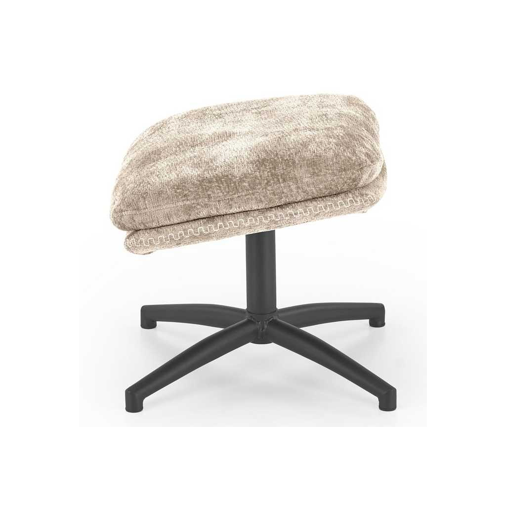 Neodmyslitelnou součástí balení je také podnožka s rozměry 50 × 45 × 42 cm. Stejně jako křeslo stojí na 4ramenném kříži z práškované ocele a potažená je příjemnou látkou.