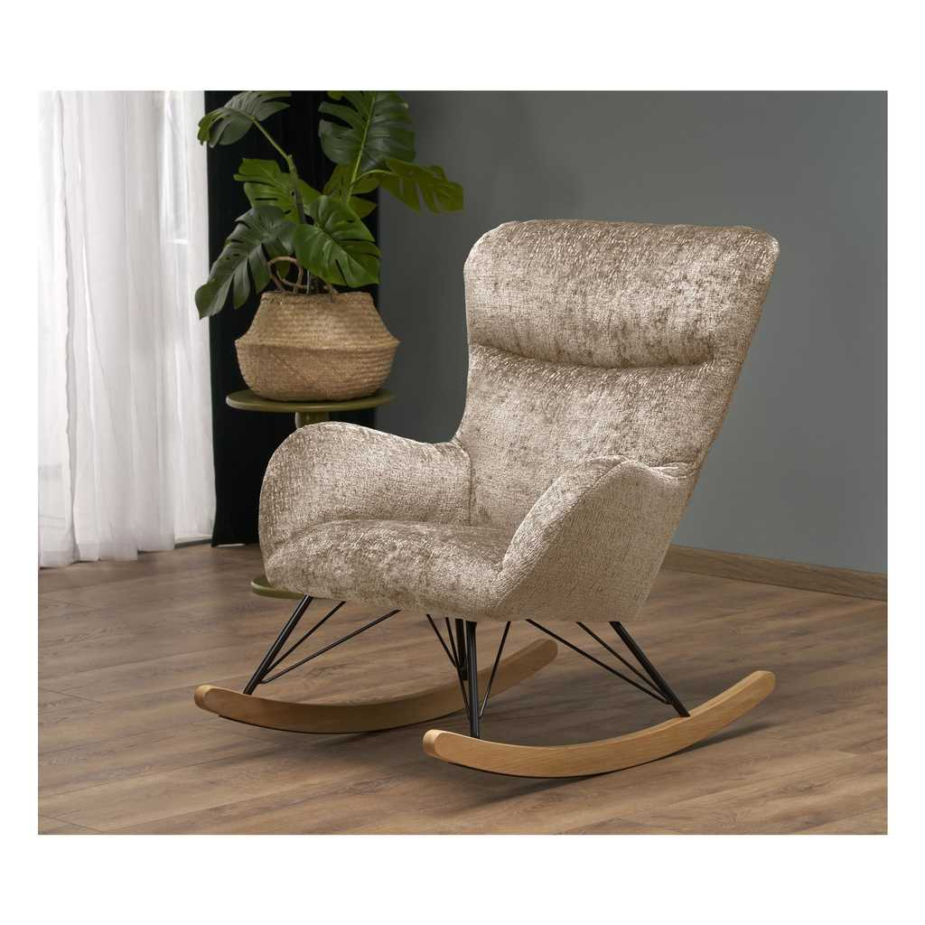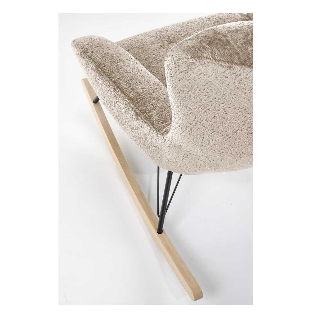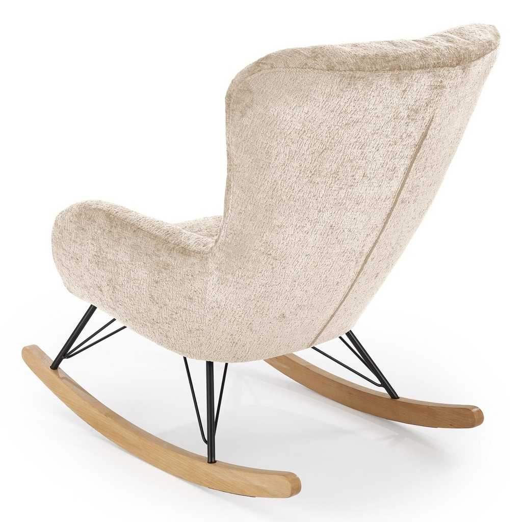Podnož pak tvoří kovové nohy zapuštěné do velkých ližin z masivního dřeva, které zajišťují možnost houpání. Jejich přírodní vzhled navodí útulnou atmosféru a skvěle ladí se zbytkem křesla.