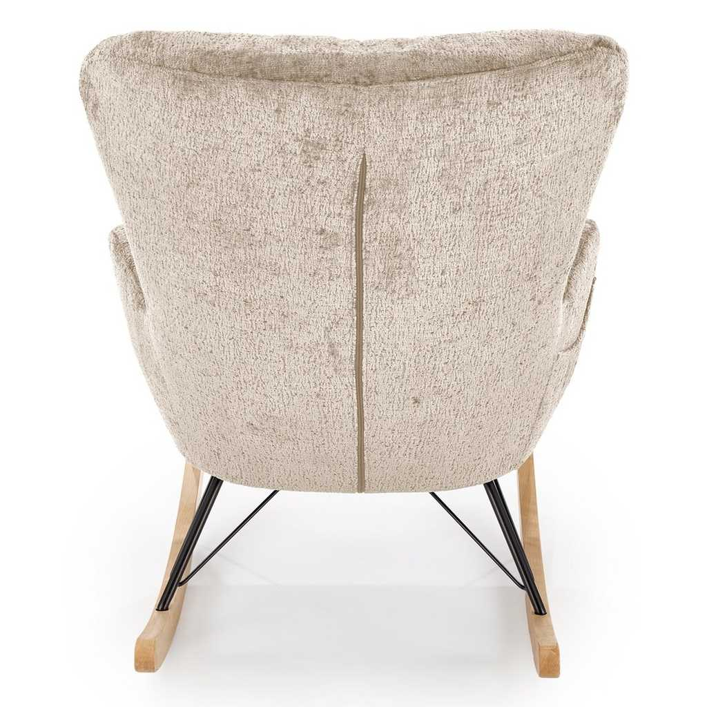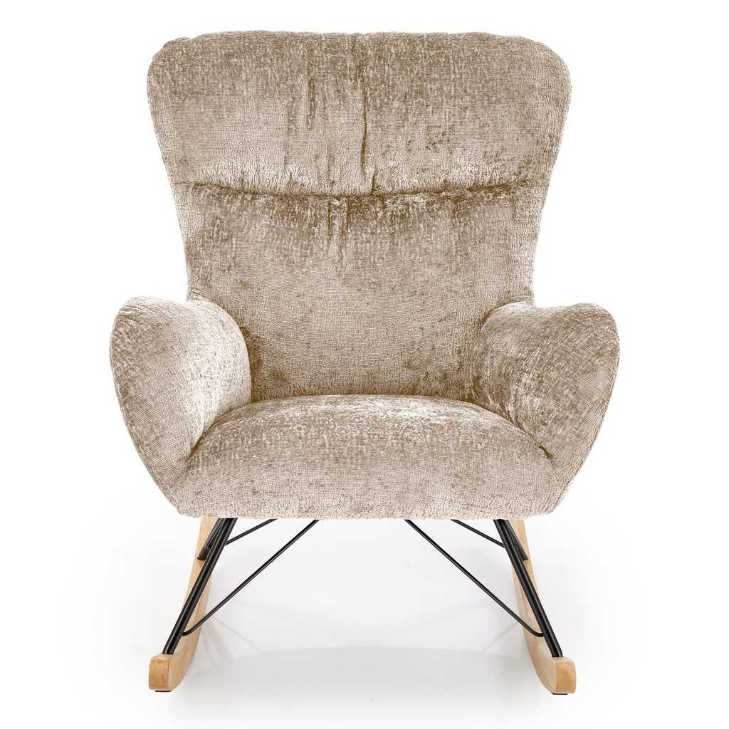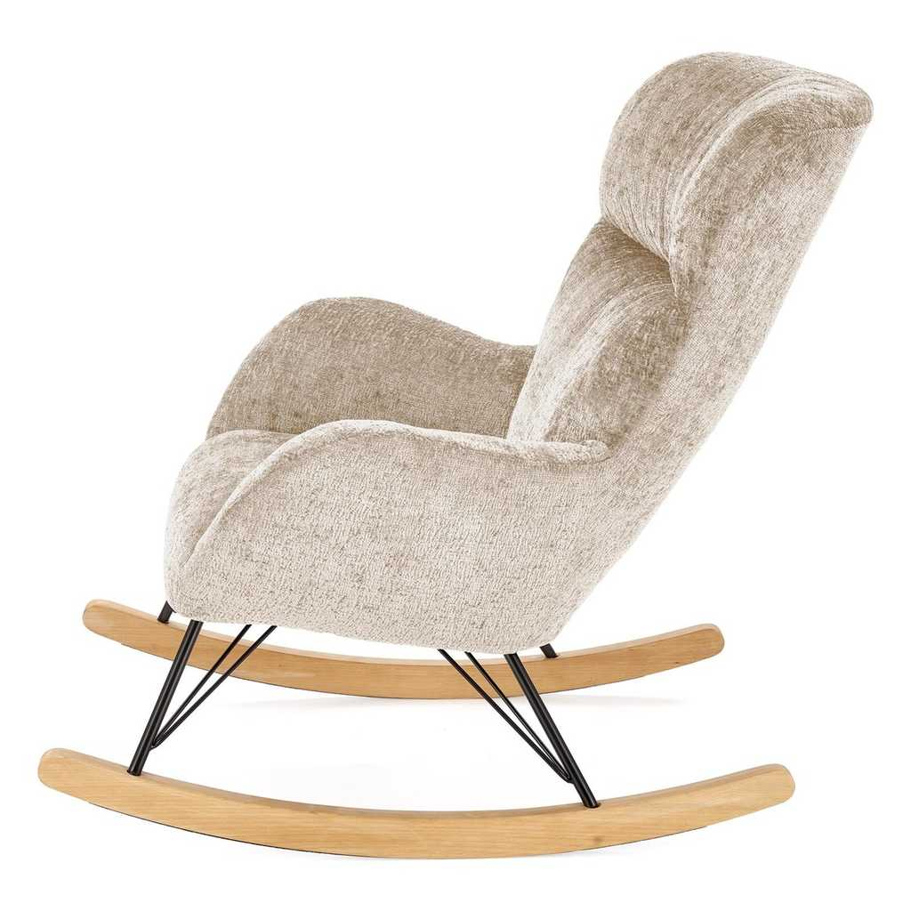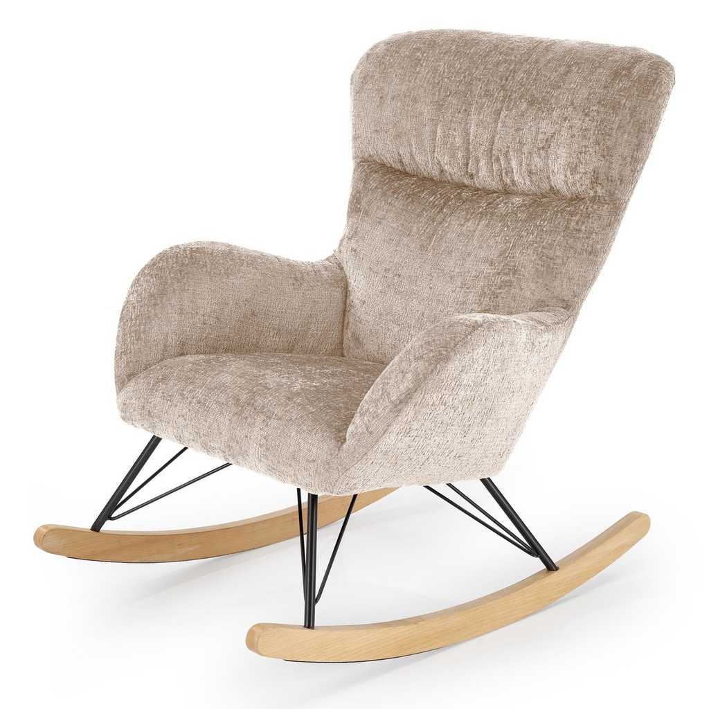 Podnož pak tvoří kovové nohy zapuštěné do velkých ližin z masivního dřeva, které zajišťují možnost houpání. Jejich přírodní vzhled navodí útulnou atmosféru a skvěle ladí se zbytkem křesla.