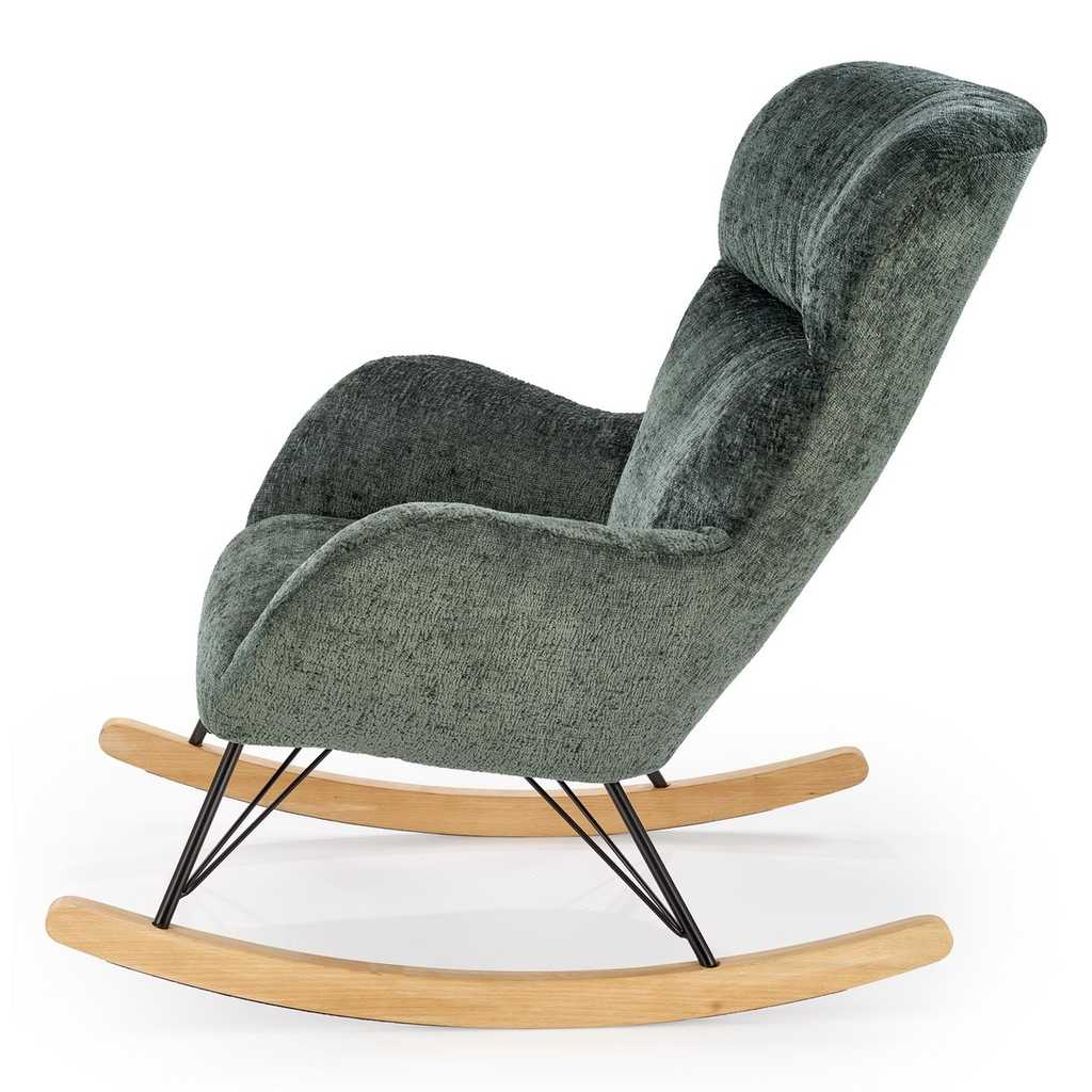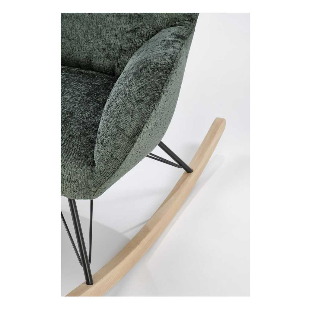 Podnož pak tvoří kovové nohy zapuštěné do velkých ližin z masivního dřeva, které zajišťují možnost houpání. Jejich přírodní vzhled navodí útulnou atmosféru a skvěle ladí se zbytkem křesla.