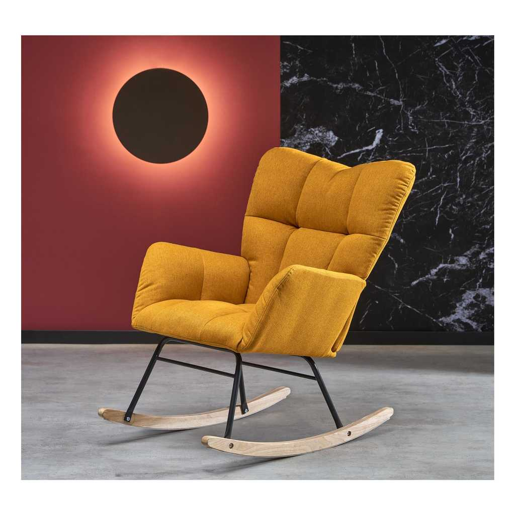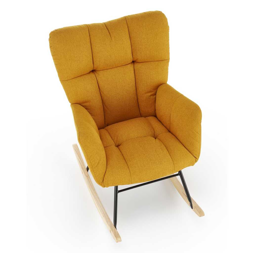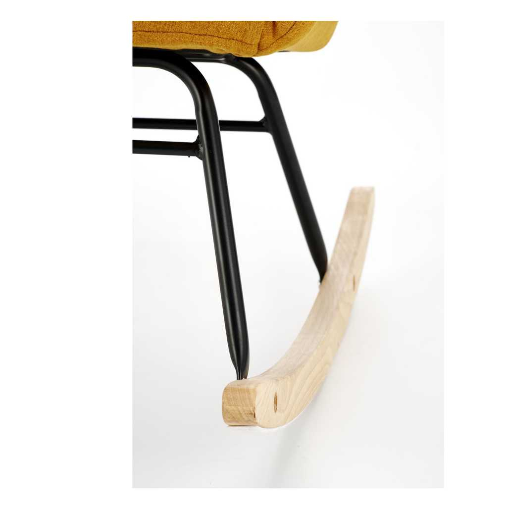 Podnož pak tvoří kovové nohy připojené k velkým ližinám z masivního dřeva, které zajišťují možnost houpání. Jejich přírodní vzhled navodí útulnou atmosféru a skvěle ladí se zbytkem křesla.