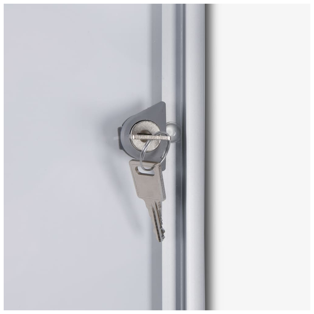 Vitrínu je možné bezpečně uzamknout pomocí otočného zámku, takže se není třeba obávat o otevření či zneužití cizí osobou.