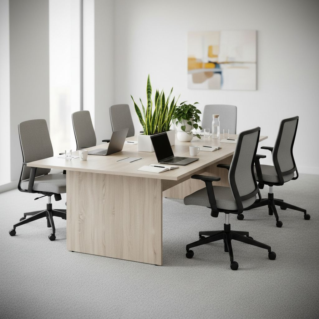 Jednací stůl Impress s rozměry 220 x 120 cm doporučujeme do konferenčních nebo zasedacích místností. Jedná se o cenově nejvýhodnější nábytkovou řadu a skvěle se hodí pro schůzky s klienty či firemní porady.
