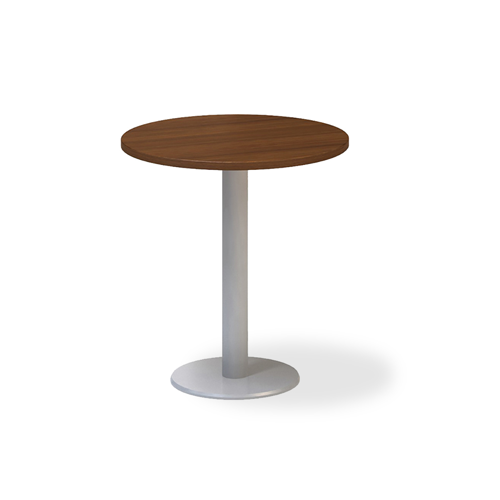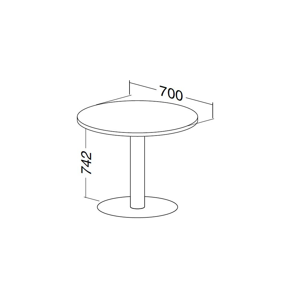 Vrchní deska je vyrobena z laminované dřevotřísky o síle 25 mm. Je postavena na stabilní kovové podnoži, která má kulatý tvar a dodá tak stolu elegantní design.