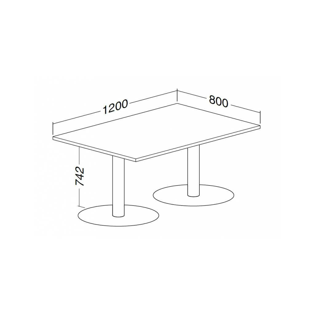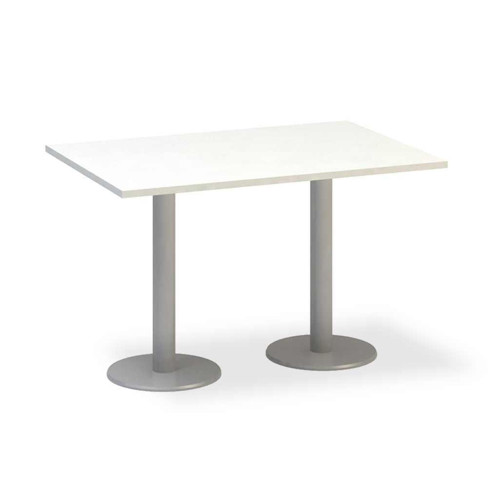 Vrchní deska je vyrobena z laminované dřevotřísky o síle 25 mm. Je postavena na stabilní kovové podnoži, která má kulatý tvar a dodá tak stolu elegantní design.