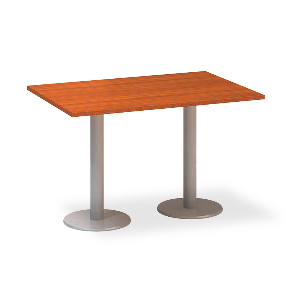 Vrchní deska je vyrobena z laminované dřevotřísky o síle 25 mm. Je postavena na stabilní kovové podnoži, která má kulatý tvar a dodá tak stolu elegantní design.